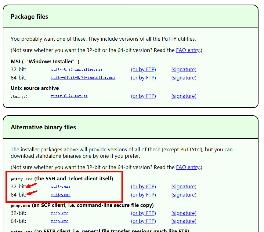 首先去官网(putty.org)下载最新客户端或者exe执行文件。我这里推荐用执行文件,因为不用安装,双击就可以使用。