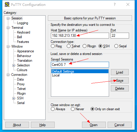 下载之后打开Putty,然后输入刚刚获得的IP地址,端口一般是22,建议保存一下,下次使用更方便。